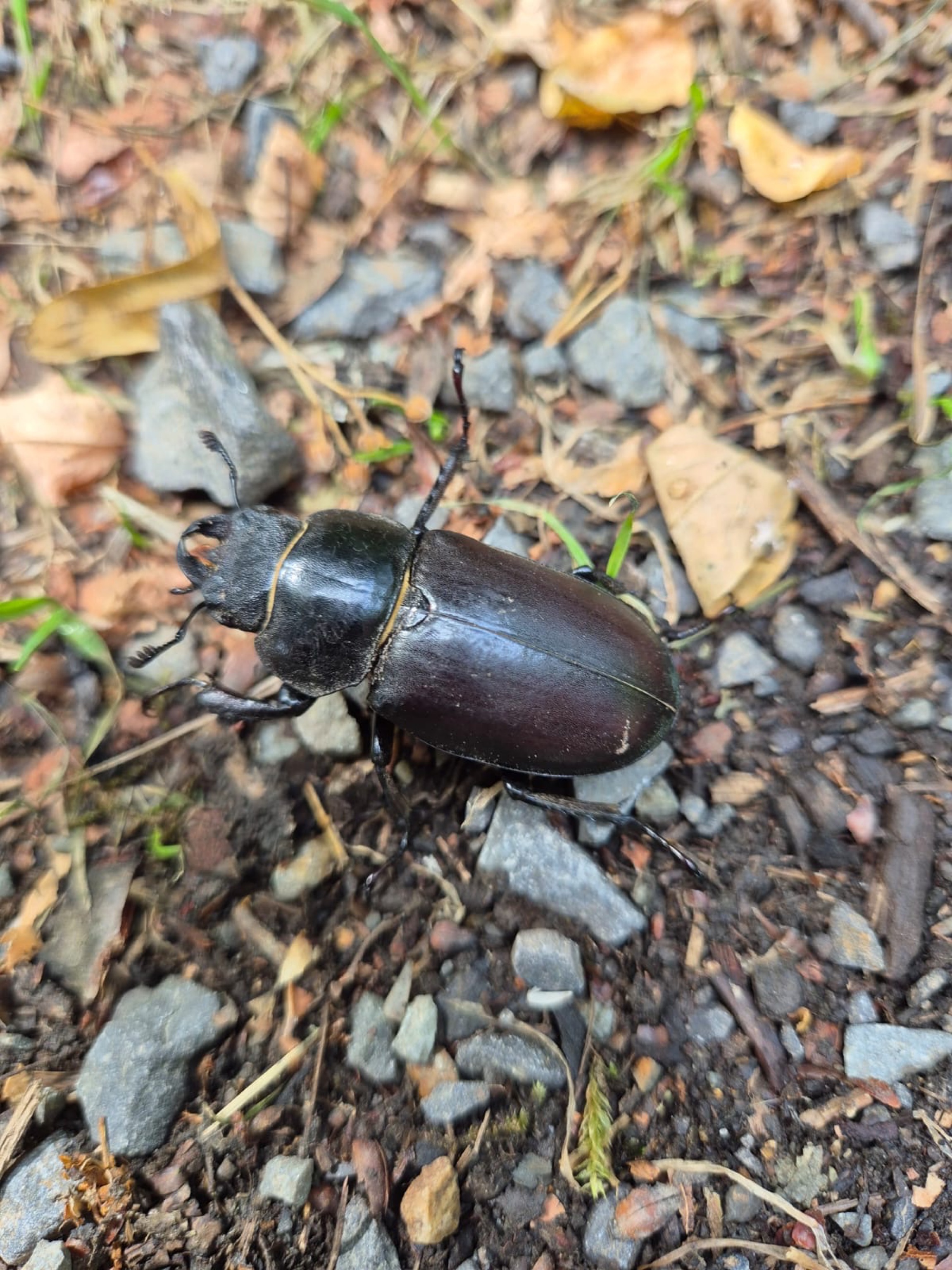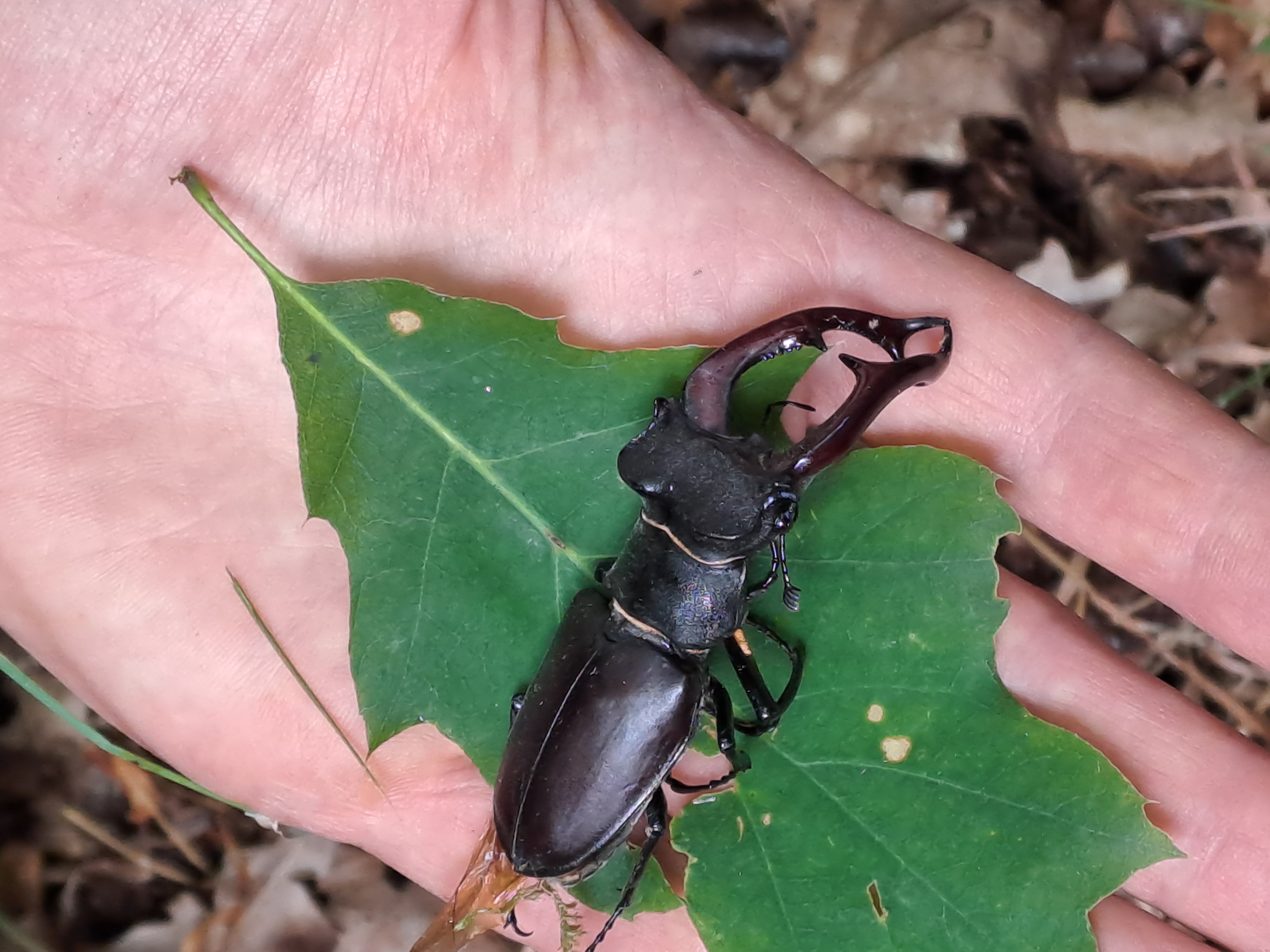 Auf unserer Entdeckungstour hielten wir gezielt Ausschau nach dem seltenen Hirschkäfer – und wurden tatsächlich fündig! In einer alten Eiche konnten wir ein Exemplar dieses imposanten Käfers beobachten – ein echtes Highlight für alle Beteiligten.